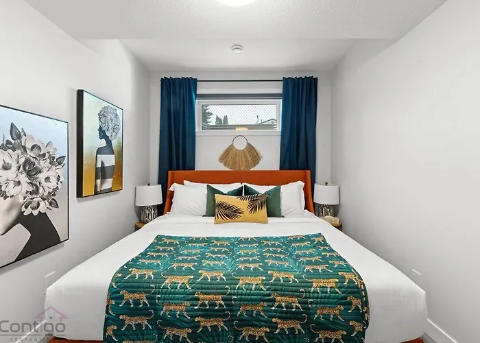 Das The Den, Centrally Located Basement Suite, King Bed, Wifi! bietet seinen Gästen eine Sitzecke, die mit einem Sofa und modernen Annehmlichkeiten wie einem Fernsehen mit mehreren Kanälen ausgestattet sind. Gästen stehen Betten mit allergikerfreundlichen weichen oder dicken Kopfkissen zur Verfügung. Diese Unterkunft bietet den Gästen 1 Badezimmer mit eine getrennte Toilette, eine Badewanne und eine Dusche an. Ein Haartrockner, Toilettenartikel und Badelaken sind ebenfalls vorhanden.